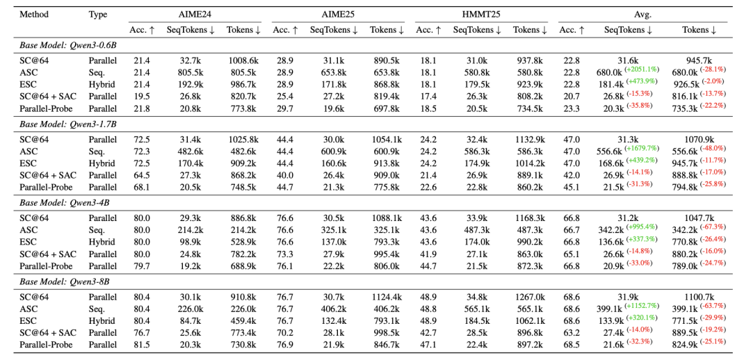 沿研究团队在 Qwen3 系列模型(0.6B 至 8B)上进行了广泛测试,涵盖了 AIME 2024/2025 和 HMMT 2025 等高难度竞赛题库。