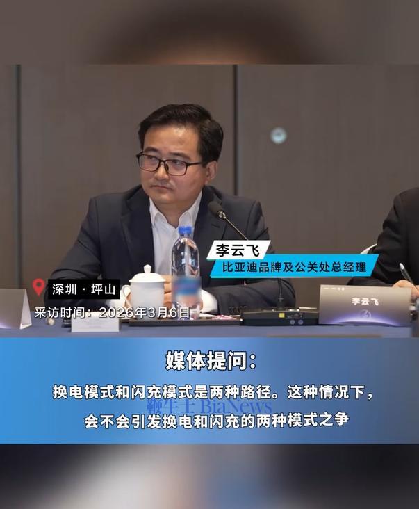 比亚迪李云飞谈「换电和闪充之争」:都挺好,是殊途同归