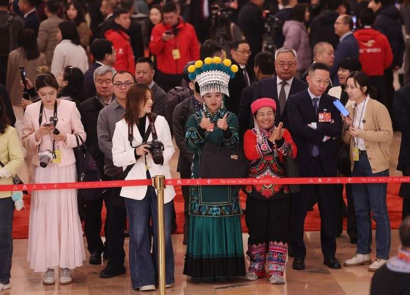 3月7日,中国职工之家, 一名人大代表盛装参加云南代表团团组会议。