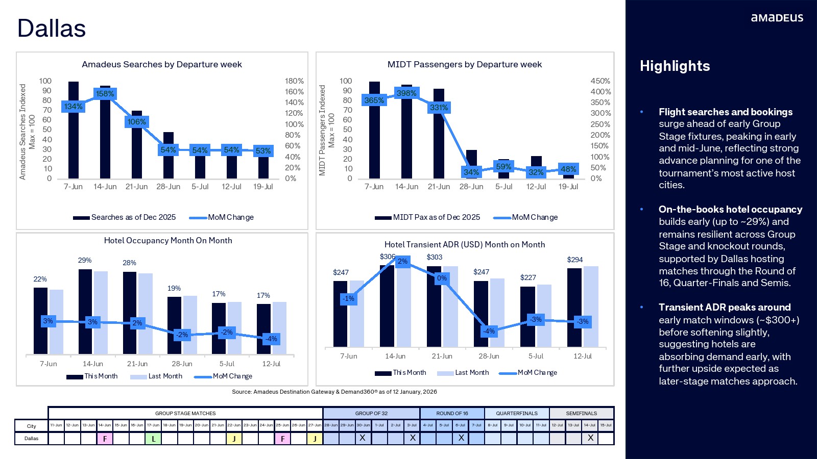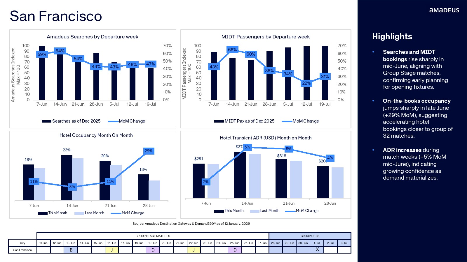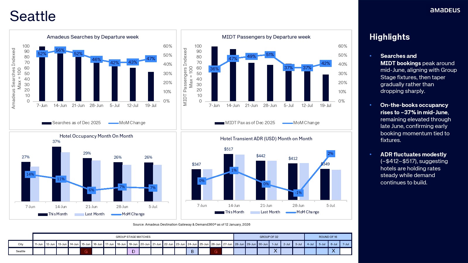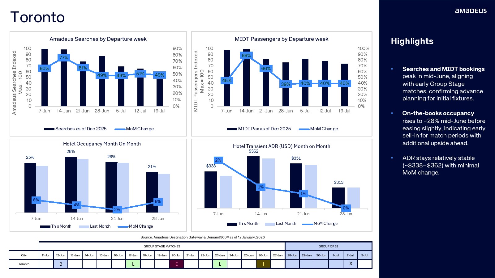 航班预订数据进一步验证了需求转化。纽约占整体航班预订的20.3%,温哥华达到15.5%,迈阿密与洛杉矶均为11.2%。与此同时,墨西哥城市的航班预订同比增幅极为显著,瓜达拉哈拉达到347%,堪萨斯城315%,蒙特雷300%。搜索兴趣正快速转化为真实出行需求。