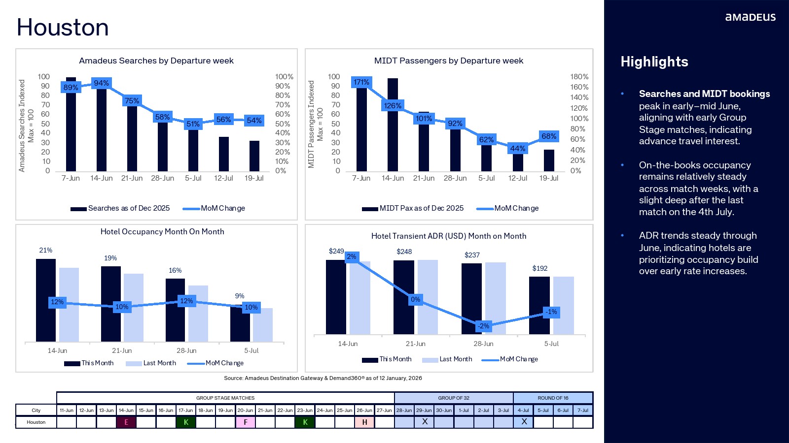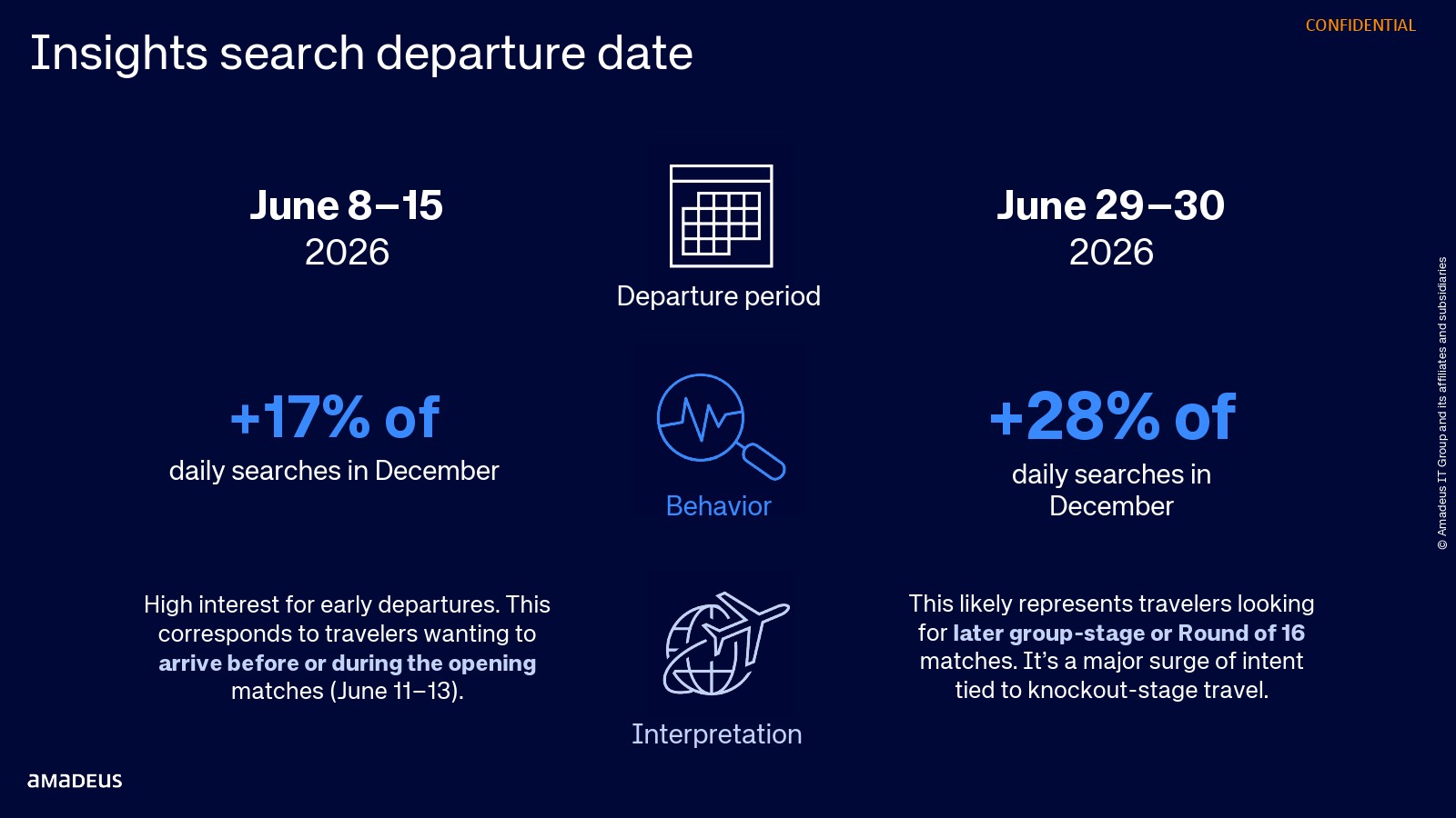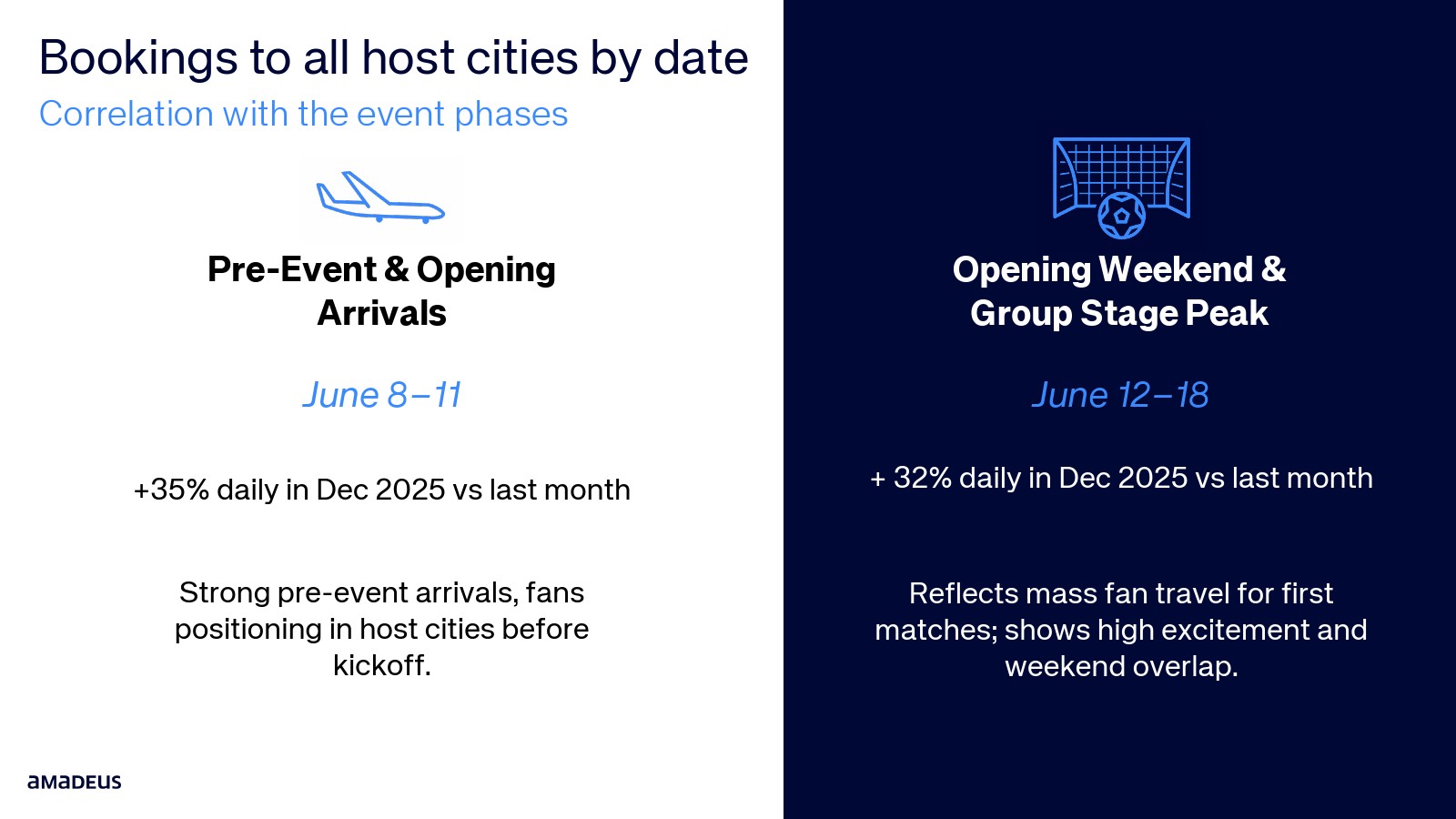 2026年足球赛事正在提前重塑全球旅行需求结构。数据显示,围绕赛事周期的航班搜索在2025年末显著上升,6月8日至15日出发的搜索量在12月环比增长17%,而6月29日至30日出发的搜索量增长28%,反映出球迷对小组赛与淘汰赛阶段的差异化出行规划。赛事时间窗口直接决定旅行需求节奏,提前抵达与淘汰赛观赛成为两大核心动机。