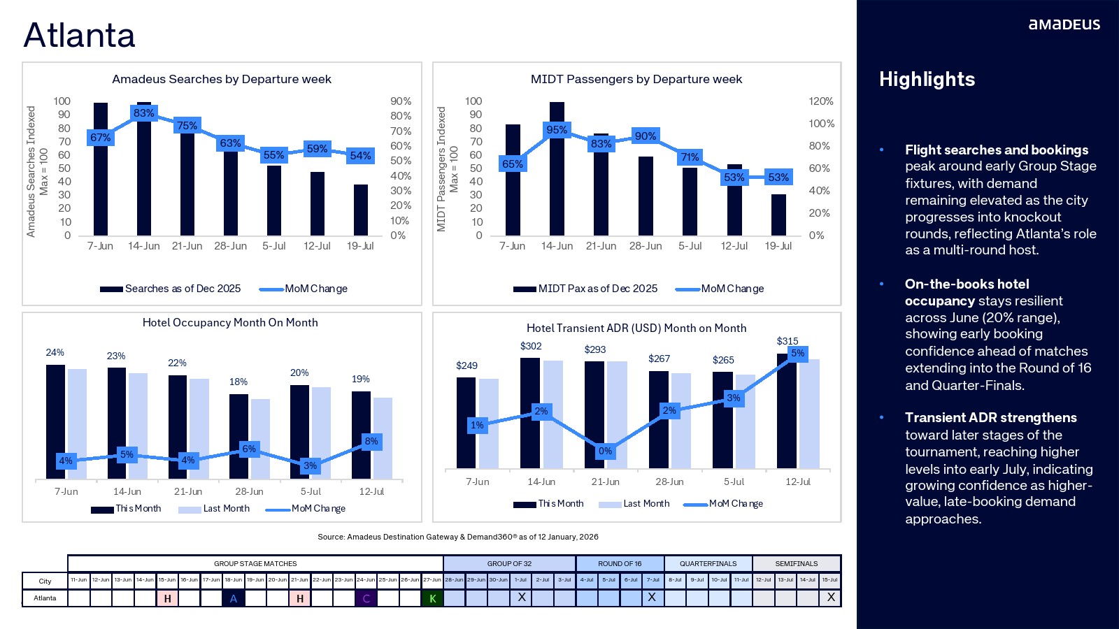 整体来看,2026年足球赛事正在形成典型的赛事驱动型旅行周期:前期以搜索增长为信号,中期航班预订快速释放,后期酒店价格和入住率持续抬升。随着赛事临近,高价值国际旅客与临近购票人群仍将持续进入市场,赛事旅游经济预计在2026年夏季迎来集中爆发,并可能成为后疫情时代全球体育旅游复苏的重要拐点。