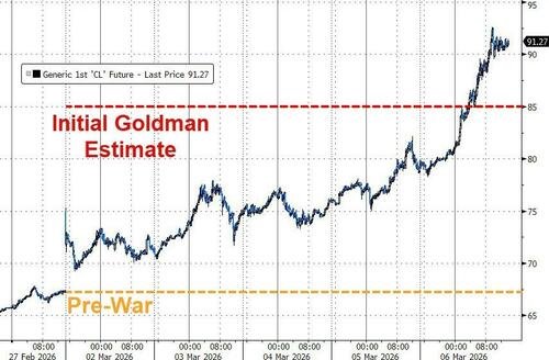 基于这些新数据、事态发展以及冲击的规模,高盛现在认为,如果到下周仍未出现解决方案的迹象,油价可能会超过100美元。而如果海峡流量在整个三月都保持低迷,油价(特别是成品油)很有可能超过2008年和2022年的峰值。