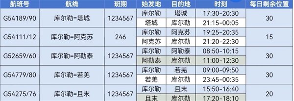 华夏航空与库尔勒梨城机场规划多条疆内体验航线,其中库尔勒至塔城、阿勒泰、且末、若羌四条航线每日各执飞一班;库尔勒至阿克苏航线每周二、周四、周六各执飞一班。