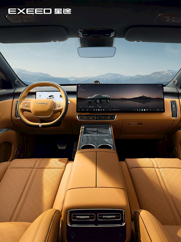 车内最为瞩目的为中控屏和副驾屏组成的30英寸一体大连屏,方向盘为双幅式,配备独立的液晶仪表盘。