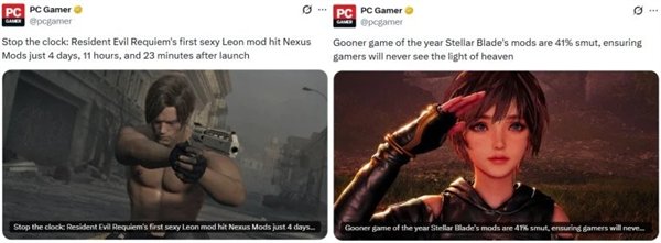 起因是他们最近发布的一篇关于《生化危机:安魂曲》的文章,记者们兴奋地报道,游戏发售仅四天后,N网上就出现了第一个让里昂脱衣的Mod。