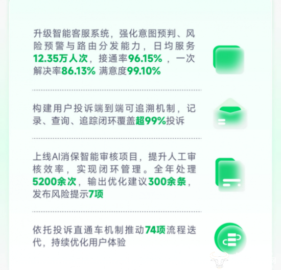 数智消保:让服务更有温度。奇富科技升级后的智能客服系统深度融合AI技术,在意图预判、风险预警与路由分发等核心环节实现能力跃升,日均服务12.35万人次,用户满意度保持在99.1%的高位。同时,我们构建了投诉端到端可追溯及投诉直通车机制,实现超99%投诉的闭环覆盖,确保消费者的每一个诉求都能被听见、被重视、被解决。