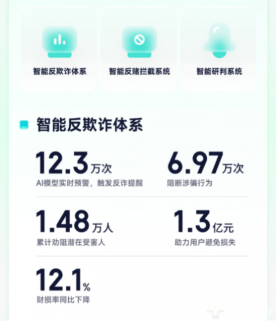 风险防护:打造三道“智慧防线”。面对日益复杂的网络金融安全挑战,奇富科技以AI技术构筑起覆盖全链路的智能风险防护体系。智能反诈体系全年实现AI反诈提醒12.3万次,成功劝阻潜在被骗者1.48万人,直接避免用户损失1.3亿元。诈骗/仿冒网址智能研判系统融合百万级黑产样本库,形成“事前预警—事中拦截—事后追溯”的防御闭环,全年输出预警超2020万次,凭借扎实的实践成果与技术创新,成功入选工信部2025年反诈典型案例。智能反赌拦截系统全年拦截涉赌客户45万余人,关联资产约67亿元,有效净化了网络金融环境。