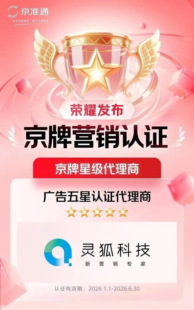 3月3日,备受行业关注的2026“京牌营销认证-星级认证”榜单正式发布。作为国内品效销一体化增长领域的领军服务商,灵狐凭借在大数据、全链路数智化营销服务与AI技术等领域的深厚积淀和卓越实力,成功蝉联京东京牌五星代理商认证,持续领跑数智营销赛道。至此,灵狐成为业内唯一连续九年获得京牌全五星代理认证的服务商,创下行业全新纪录。