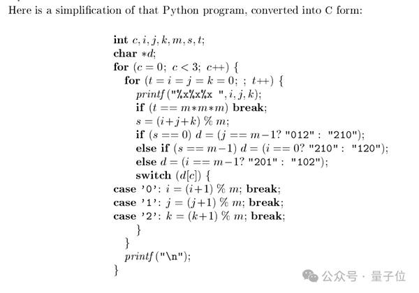 高德纳随后亲自将该程序简化为C语言版本,并验证m=3, 5, 7, 9, 11等情况,结果全部正确。