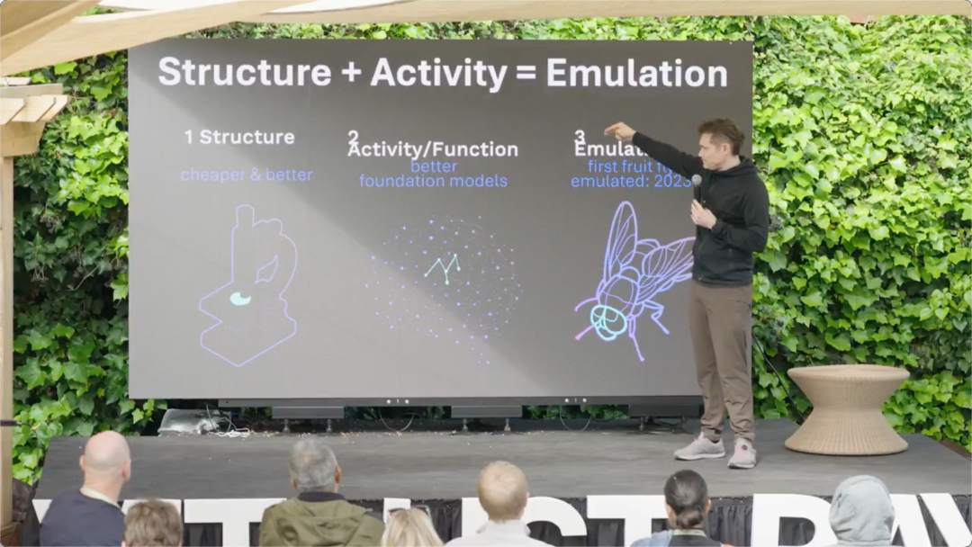 他们在演讲里甚至说了一个很大胆的时间表:人类大脑上传,乐观估计 2030 年左右。