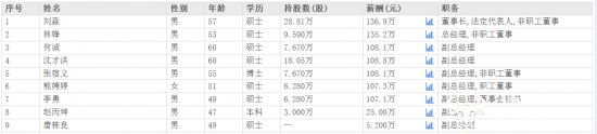 除此之外,财务总监谢红下降约20万元至109.3万元,副总经理何诚及沈才洪则分别降薪约3万元、5万元,分别为108.1万元及108.8万元。