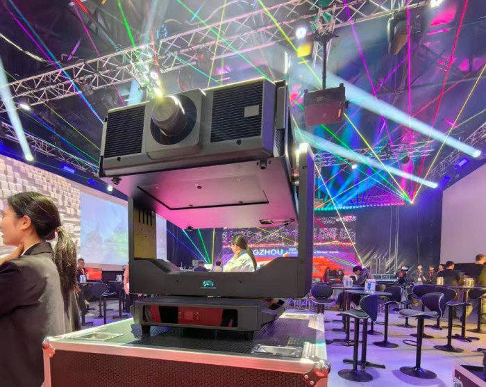 其中,AVP-2020作为此次首发的旗舰级产品,凭借20000流明的超高亮度,成为大型工程、户外文旅项目的理想选择。该产品采用先进的激光光源技术,亮度均匀性高达95%以上,即使在强光环境下也能呈现清晰、细腻的画面,同时支持4K高清分辨率,色彩还原度精准,能够完美呈现文旅项目中的细节纹理与色彩层次,为观众带来沉浸式的视觉体验。据悉,此类超高亮度投影产品在大型户外水秀、主题公园、大型场馆投影等场景中具有不可替代的优势,如同科视在《深蓝秘境》水秀剧场中使用的20000流明投影设备一般,可实现灵活投影与精准画面呈现,助力文旅项目打造差异化竞争力。