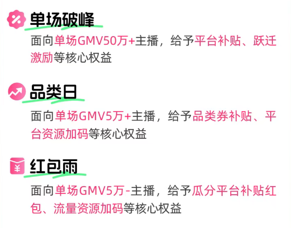 值得注意的是,快手在此次活动中对不同体量的商家进行了分层激励。针对单场GMV达到50万以上的头部主播,平台提供了补贴和跃迁激励,帮助其进一步突破销售峰值;而对于腰尾部主播,则推出了“扶摇计划”,通过流量资源支持其完成突破型大场直播。