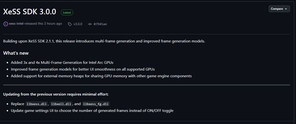 快科技3月10日消息,Intel近日在GitHub上正式发布了XeSS 3.0 SDK开发工具包,带来了多帧生成技术及更新的帧生成模型,但外界关注的开源承诺依然未能兑现。
