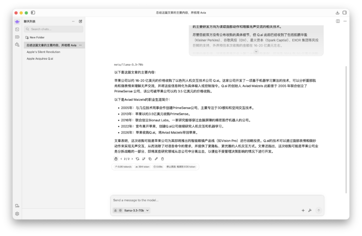 既然有了这么充裕的内存,我们当然要按照苹果宣传的那样,狠狠运行一下那些以前跑不了的大规模本地 AI 模型了。