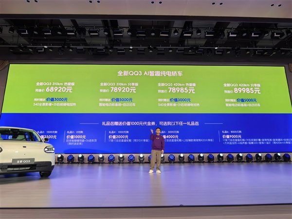 快科技3月10日消息,今晚,全新奇瑞QQ3 EV正式预售,共推出4款车型,预售价区间为6.8920-8.9985万元。