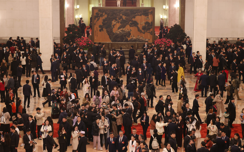 ▲3月9日上午9时,十四届全国人大四次会议第二次全体会议在北京人民大会堂举行。大会开幕前,全国人大代表步入人民大会堂。新京报记者 李木易 摄