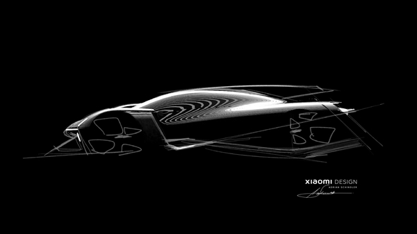 和小米VGT实车照片不同,设计手稿更为抽象、概念,车身侧面极致流线型,而前脸和尾部的灯光和夸张的风道组件,成为标志性的设计语言。