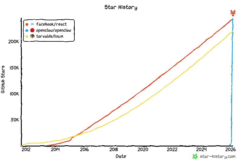 所以只过了两个月,OpenClaw就在Github上收货了25万个Star,成为了史上最受欢迎的开源项目。