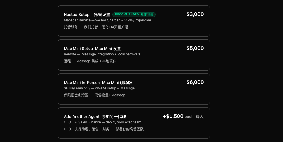 在遥远的大西洋彼岸,有人开起了代装公司,装一次OpenClaw收费上千刀,号称可以年入百万。