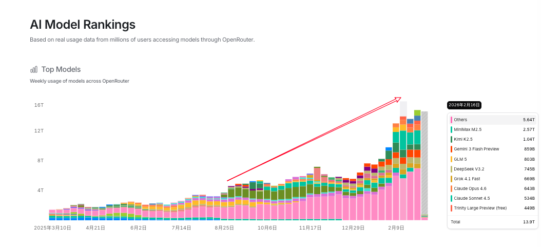在模型中转网站Openrouter上,这几个月所有模型的API调用量都在增加,赚麻了。