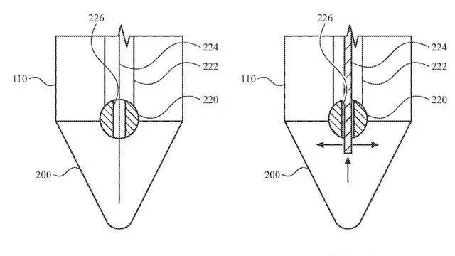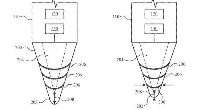 在外部形态方面,苹果在专利中明确表示,未来的笔尖不再局限于传统的固定圆锥体,而是能够根据当前任务改变大小与形状。
