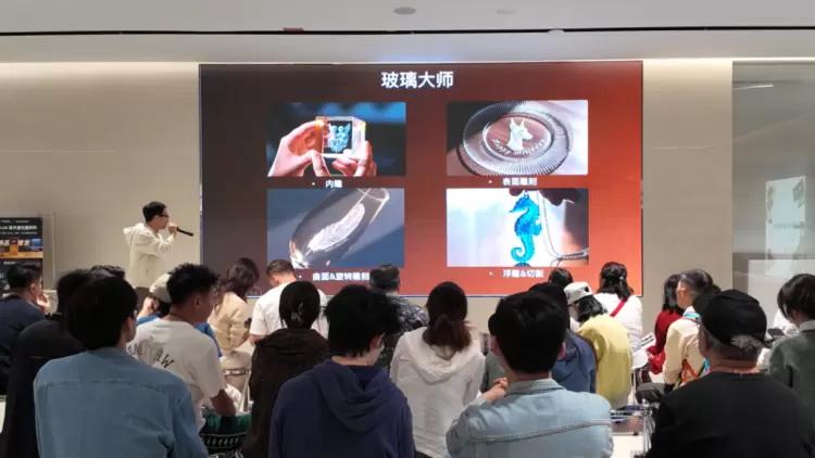 在应用展示环节,知名UP主 “Owen来造”演示了UV紫外激光雕刻机3D玻璃内雕的制作过程。