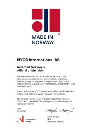 作为北欧高端膳食营养补充剂的代表,NYO3不仅是“挪威制造”理念的践行者,更是其坚定的传承者。NYO3旗下的三文鱼铁产品,凭借其从纯净海域的三文鱼中提取的天然原料,以及符合挪威传统又融入现代科技的配方,成功获得了“Made in Norway”产品认证,成为当前唯一获得该项认证的三文鱼铁产品。