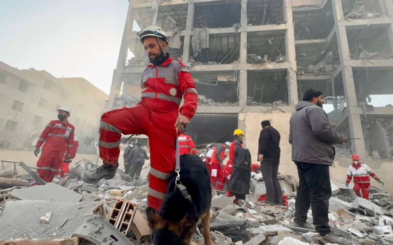 ▲当地时间2026年3月10日,伊朗德黑兰,美国和以色列对伊朗发动军事袭击,广场遭空袭导致建筑受损严重,救援工作进行中。图/IC photo