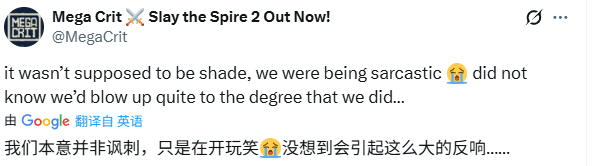 所谓“撞车不可怕,谁输谁尴尬”,有时候哪怕厂商间没有暗自攀比的初衷,但在微妙的讨论语境下,一举一动都可能被粉丝附加上更多的含义。《杀戮尖塔2》的制作组Mega Crit就因为发售当天的一条祝贺推文,差点引发了一场误会。