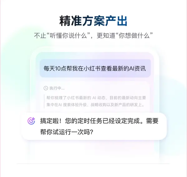 无论是在开会间隙、出差途中,还是在通勤路上,用户都可以通过一句话指令,让AI完成信息搜集整理、定时推送、跨平台操作、自动下载应用并执行任务等复杂流程。