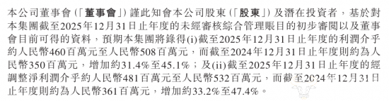 从利润端来看,绿茶集团2025年全年利润预计为4.60亿元至5.08亿元,较2024年同期的3.50亿元,增加约31.4%至45.1%,经调整净利润约为4.81亿元至5.32亿元,较上年同期的3.61亿元同比增长33.2%至47.4%。