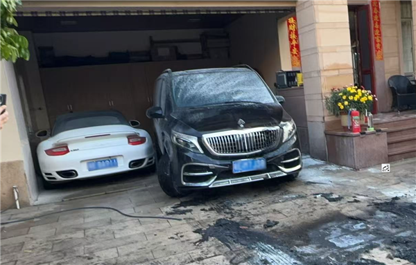 视频中,这台电马从底盘往外窜出大量明火,整车被大火吞噬;更让车主心惊的是,福特电马后面,还停放有敞篷版保时捷Turbo S、奥迪TTS和奔驰V级等多辆豪华车。