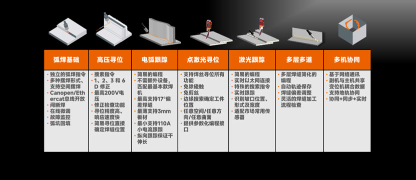 • 电弧跟踪:无需额外设备,适配17°焊缝偏差、3mm板材,支持小电流与双向跟踪