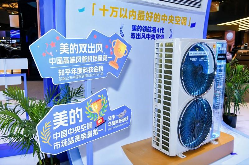与领航者4代交相辉映的,是美的双出风风管机的市场表现。作为“第二代风管机”,它以颠覆性的上下双出风口设计,彻底终结了传统风管机“要么直吹、要么不均”的难题。“不是所有的风管机都叫双出风。” 这句话在AWE现场被反复提及。凭借差异化的产品形态,美的双出风风管机稳居中国高端风管机销量第一,既可以作为风管机使用,也可以作为中央空调的内机,灵活适配不同户型需求。