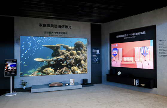 展会现场,刷新尺寸极限的150吋探索X1 Ultra、全球首款云台一体化激光电视探索X1 Pro,以及开创美学新形态的可卷曲激光影院同台登场,构筑出强大的“家庭影院”产品矩阵。作为全球激光显示领域的引领者,海信激光电视正在将“家用电视,院线标准”的风潮推向新高度。
