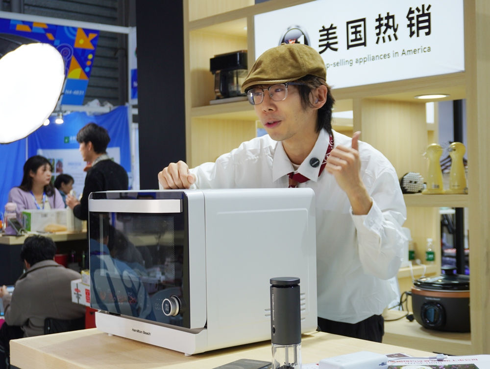 现场注意到,汉美驰Hamilton Beach品牌在本次展会的陈列设计划分了五大产品系列区域:咖啡系列产品专区、牛扒煎烤空炸产品专区、创新户外电器装备场景专区、家居清洁及衣物护理专区、料理榨汁制冰专区、炖煮系列产品专区等;在展位的功能区域的划分方面也设有:中央厨房美食演示区、中央产品墙洽谈区、专属直播机位区等。