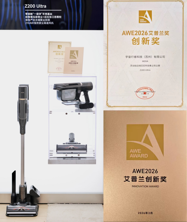 自品牌创立以来,MOVA始终以“技术创新解决清洁痛点”为核心,聚焦家庭清洁的真实场景,持续投入研发并打造原创技术体系。此次斩获艾普兰奖,是MOVA吸尘器在清洁电器领域的重要里程碑,更是对其坚持技术创新的最好回馈。