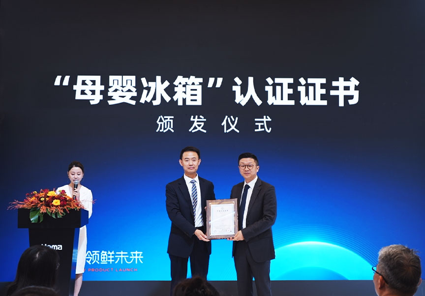在本次发布会中,我们共同见证了中国家用电器研究院副院长曲宗峰向奥马冰箱颁发由中家院认证中心授予的“母婴家电认证“。此项认证标志着奥马母婴冰箱在质量、安全、储鲜性能等方面均达到业内严苛标准,产品品质与智能创新均走在行业前沿,是真正贴合母婴家庭核心需求的优质产品。