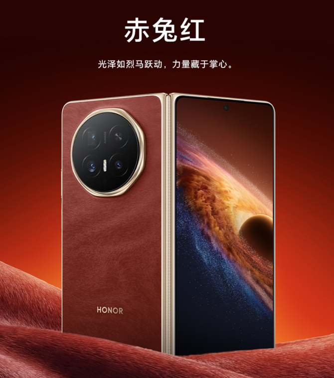 颜值方面,荣耀Magic V6更是精准踩中马年审美,推出赤兔红、雪域白、旭日金、绒黑色四款配色,每一款都极具质感。其中,首销即售罄的赤兔红配色最具亮点,取“马中赤兔,宏图大展”之意,机身背板采用全新的环保皮材质,通过精湛工艺打磨出法式奢绒纹理,摸起来亲肤细腻,宛若丝绒触感,在不同光线角度下,丝绒纹理会呈现出微微反光,宛若微风拂过的麦浪,视觉上温润高级,兼具颜值与实用性,不仅好看,还耐刮耐磨,即便长期裸机使用也无需担心磨损。