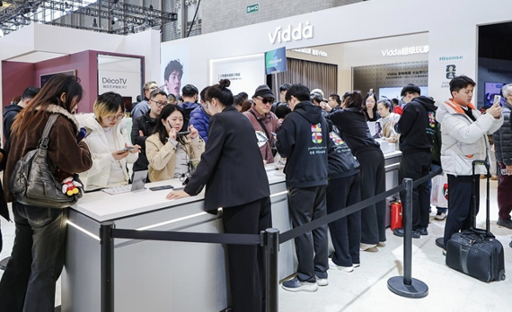 本次AWE上Vidda亮相了多款产品,如轻盈佩戴、千元内音质最好的V11⽿夹式⽿机,C5⽆界 Master沉浸式激光投影,拾⾳清晰、听录⼀体的Vidda G11 AI⾳频眼镜,以“随身巨幕,电影画质”为核心打造的创意AR观影眼镜,它们与大玩家G7共同组成体验升级的套装,展现了万物互联时代多场景适配的深远价值。
