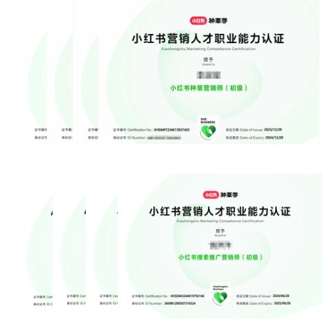 目前,公司已拥有:小红书官方认证讲师 5位,小红书初级种草营销师 70+,小红书搜索推广营销师 100+,总计近200人获得小红书官方人才认证。