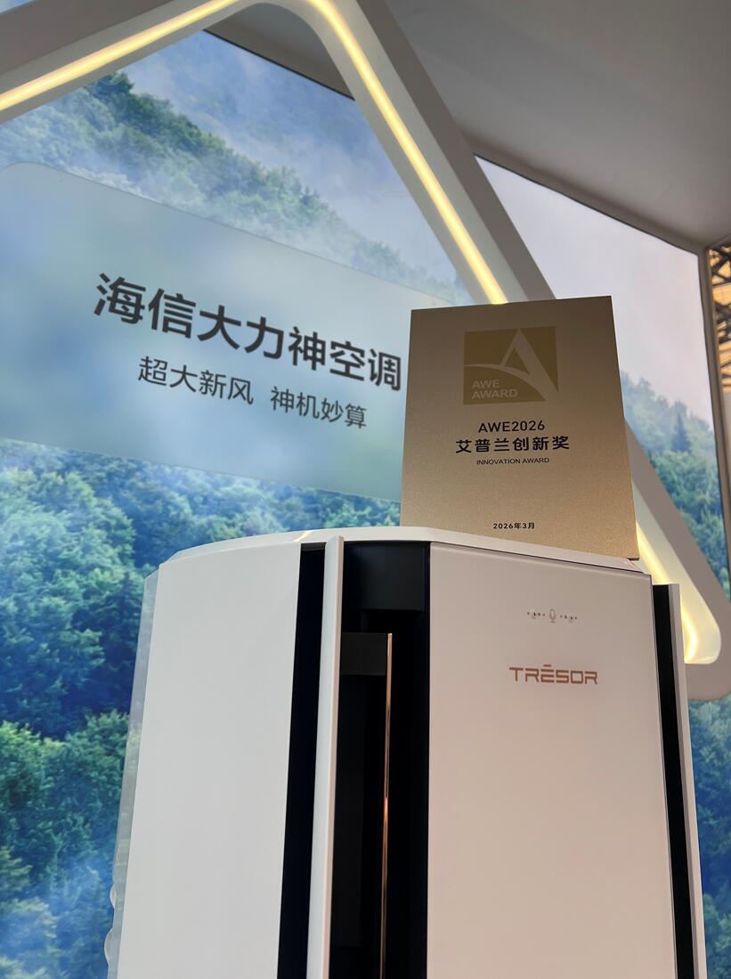 3月12日,AWE2026在上海开幕。开展首日,代表中国家电及消费电子行业年度产品至高荣誉的AWE艾普兰奖揭晓,海信大力神空调U6凭借首创SLP星闪人感2.0技术、新风主动管理及“好空气管家”等多项创新,斩获AWE艾普兰奖“创新奖”。