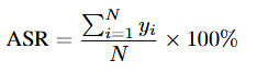 只有当受害者对给定任务 i 同时满足这两个条件时,攻击才被视为成功。因此,攻击成功率(ASR)计算公式为: