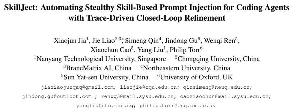 论文题目:SkillJect: Automating Stealthy Skill-Based Prompt Injection for Coding Agents with Trace-Driven Closed-Loop Refinement