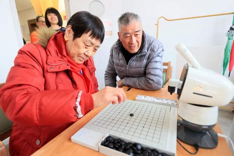 驿站一层智能餐厨区,实现从进门到用餐全流程智能化服务。炒菜机器人按标准精准烹制各色佳肴,口味稳定适口;送餐机器人灵活穿梭于餐区之间,精准完成配餐配送;外侧空间里,已取得热食类餐饮《食品经营许可证》的“圆虎煎饼机器人”,3分钟即可标准化制作美味煎饼,让用餐体验既高效便捷又贴心安全。二层托育区专为婴幼儿打造,引入悟空二代机器人、画画机器人、足球机器人等陪伴类机器人,构建起寓教于乐的互动空间,能让孩子在快乐玩耍中提升对科技的认识。三层集康养、休闲、日间照料于一体,在迎宾机器人引导下,老年人可以按需前往不同区域,体验各类智能机器人。康复理疗区堪称老年人的“健康乐园”,可满足康复训练、健康检测等需求——按摩机器人提供多部位适配的舒适按摩,艾灸机器人智能定穴施灸、控温防烫,健康检测设备可快速完成多项指标检测,外骨骼机器人则帮助老人进行精准、科学的康复训练。闲暇时走进“智慧棋牌室”,与下棋机器人对弈切磋,领略泡茶机器人“一键式”茶艺,让康养时光更具乐趣。