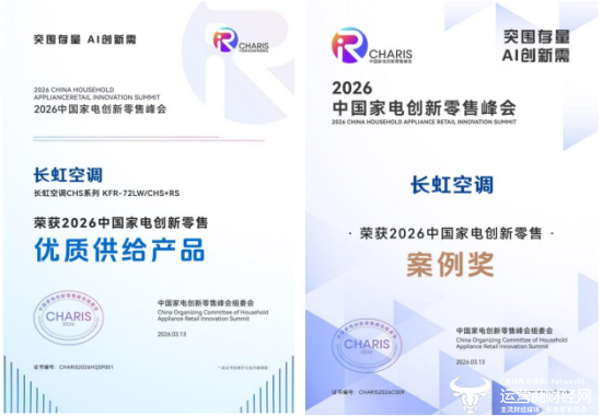 3月,中国家电及消费电子博览会(AWE2026)在上海启幕。作为行业风向标,AWE不仅是新品与技术首发的秀场,更是产品实力的考场。在本届展会上,2026中国家电创新零售峰会上同期举办,长虹空调一举斩获两项大奖:客餐厅共享空调获评“2026中国家电创新零售峰会优质供给产品”,春熙路夏日营销案例荣膺“中国家电零售创新案例”,两项殊荣,印证了长虹从产品创新到用户触达的全链路实力。与此同时,“山水间”空调凭借健康空气领域的差异化定位,成为展会期间业界热议的焦点。