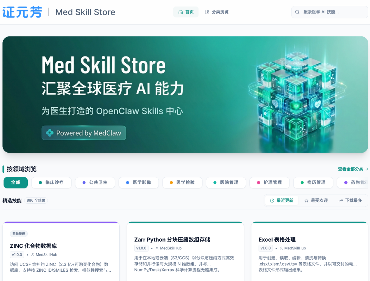 这一轮重估并非单纯来自情绪推动,而是建立在“AI产品持续落地—业务协同增强—平台化估值逻辑打开”的连续催化之上。3月9日,轻松健康正式推出“证元芳·MedClaw协作体”,将循证医学智能体“证元芳”与 OpenClaw 多智能体框架深度融合,医生可在平台内一键调用多Agent完成任务拆解、证据检索、指南比对、结论生成与过程归档,标志着公司在严肃医学AI方向上的产品化进程进一步提速。3月13日,公司又上线证元芳 MedClaw Skills Store,首批发布886个标准化循证医学 Skill,覆盖临床诊疗、公共卫生、医学影像、医学检验、医院管理、护理管理、病历管理、药物管理八大场景,进一步将单点模型能力扩展为可分发、可复用、可迭代的专业能力市场。