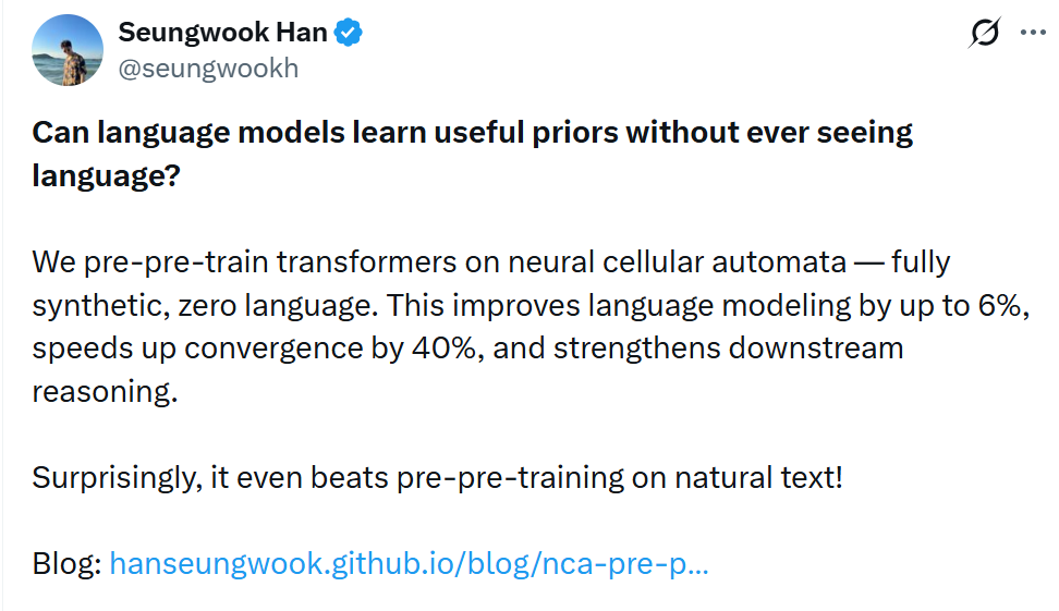 博客:https://hanseungwook.github.io/blog/nca-pre-pre-training/